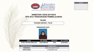Tugasan Individu Folio Pengurusan Pembelajaran Kps3014